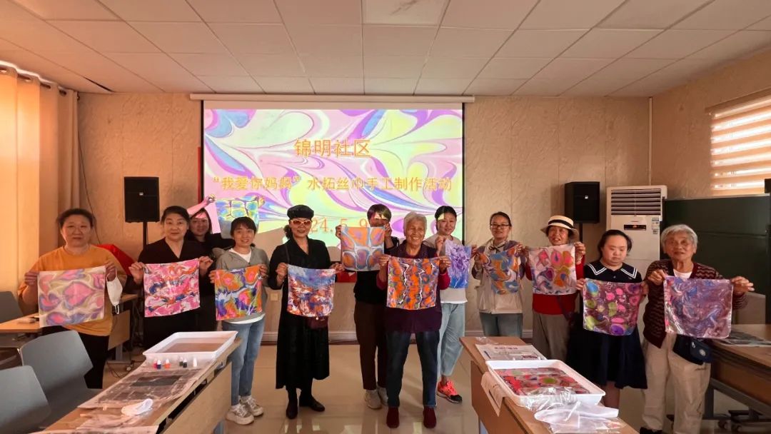 东营经开区胜利街道锦明社区开展“我爱你妈妈”水拓丝巾手工制作活动