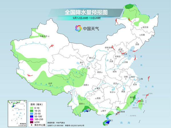 今天夜间到明天,降雨会继续向南压缩至华南南部等地,福建东南部、广东西南部沿海、海南岛等地部分地区有中到大雨,其中,云南东南部、海南岛中东部等地部分地区有暴雨。