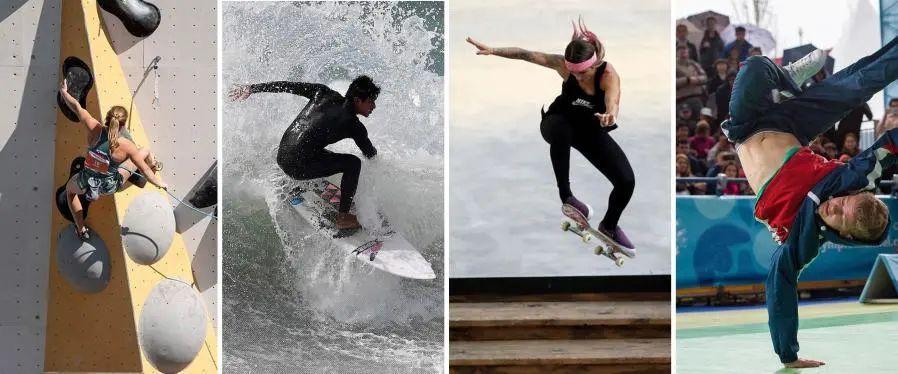 四个项目中,滑板、攀岩、冲浪三项已经是东京奥运会正式比赛项目。霹雳舞则是首次进入奥运会。2018年布宜诺斯艾利斯青奥会上,霹雳舞曾作为正式比赛项目有过“惊艳”亮相。
