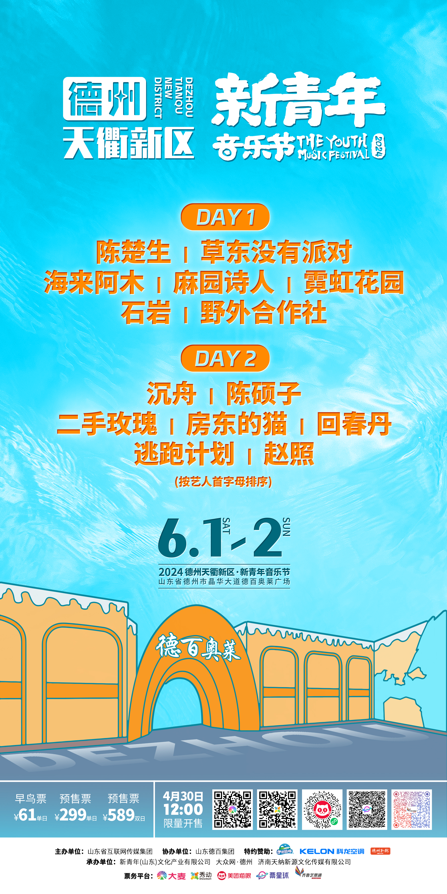 2024德州天衢新区·新青年音乐节门票信息如下: