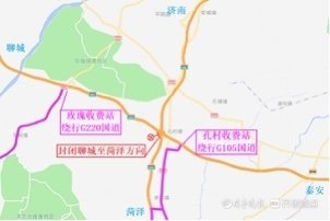 聊城经孔村枢纽至菏泽方向的车辆,可在玫瑰收费站下高速绕行G220国道;若错过玫瑰收费站,可由孔村收费站下高速,绕行G105国道。