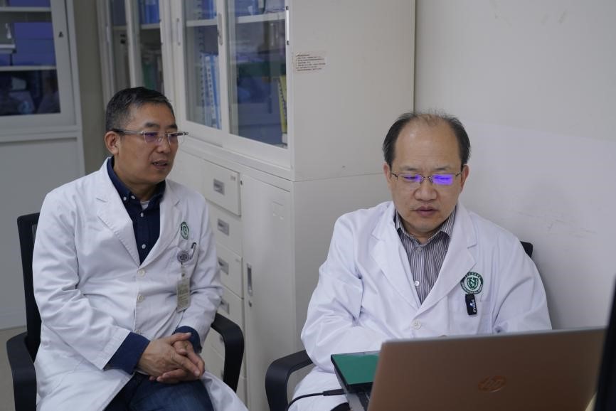 李简教授(右)、东院胸外科主任张哲(左)分析病例