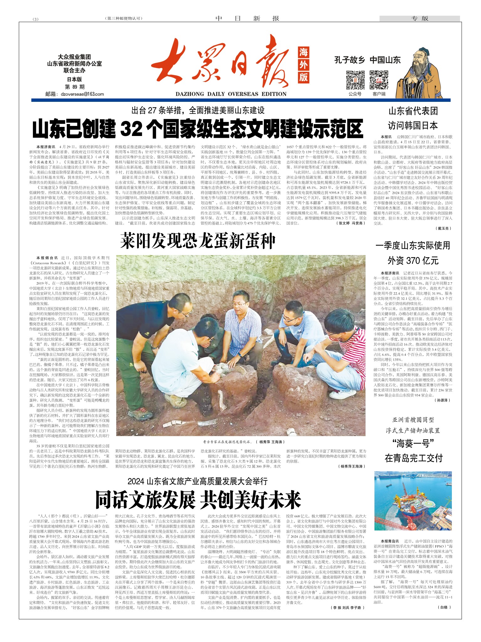 大众日报海外版:中日新报89期 山东已创建32个国家级生态文明建设示范区