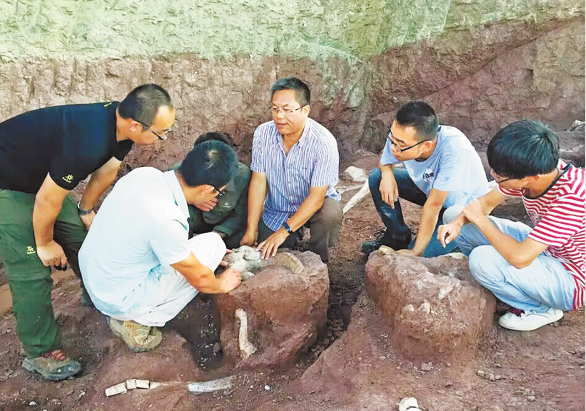 考古专家正在发掘恐龙蛋化石。 ( 杨秀萍 王海涛)