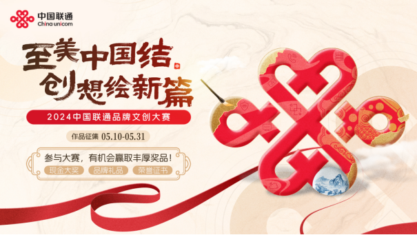 2024年5月10日,由中国联通发起的“至美中国结 创想绘新篇——2024中国联通品牌文创大赛 ”火热开启,邀请全民参与共创中国结,为传统文化的发展不断注入新的活力。