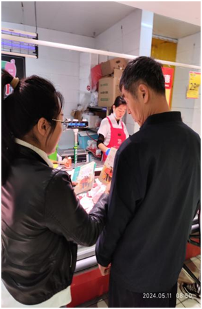 5月11日,开发区收展营销服务部宣传员来到开发区香江路家家悦超市入口,利用超市采购早高峰契机,开展金融知识宣传活动,为往来市民朋友发放金融知识宣传折页,讲解基础金融知识,提醒市民朋友注意个人信息安全保护、防范非法集资、恶意代理退保,向市民普及金融消费者八项权益。同时,邀请往来市民参与“合理金融投资,守护资金安全”线上消保知识答题活动,在现场交流互动中,增强市民金融知识素养,吸引众多市民朋友参与其中。