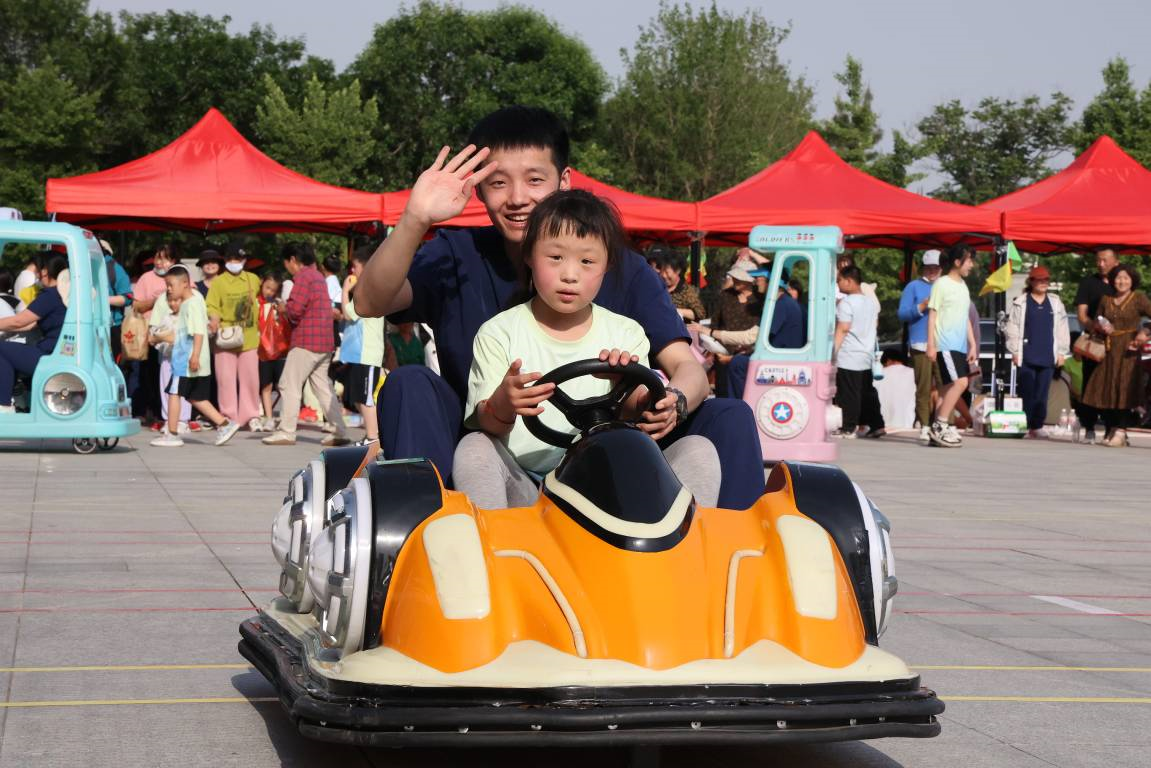 6周岁的小汶杞第一次坐上了游乐电动车,在辅助老师的帮助下当了一次驾驶员,他踩下油门,车子在场地上奔驰起来,有了不一样的感觉。妈妈于女士告诉记者,孩子平常看大人开很羡慕,“这次心愿实现了,很有成就感。”