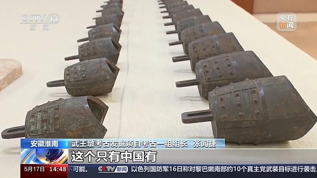 武王墩考古发掘项目考古一组组长 张闻捷:中国古代编钟在世界范围内是独一无二的,这个只有中国有,编钟它不仅仅是一个重要的礼器的器型,它也是一个很重要的音乐资料。