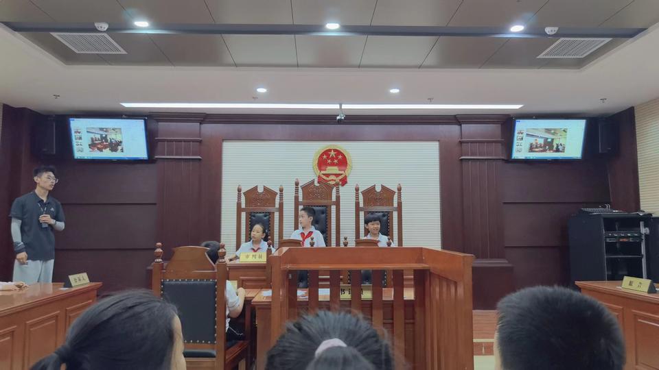 在模拟法庭,随着小小审判长法锤敲响,进行了一场“作业多好还是作业少好”的庭上自由辩论。由正方先开始,然后反方发言,此后正反方自动轮流发言,辩手们据理力争,争锋激烈,整场辩论精彩不断,锻炼了队员们的思辨能力、语言表达能力、团队合作能力。同时通过法庭介绍、法庭调查、指证质证、法庭审判四个环节揭开法庭神秘面纱。