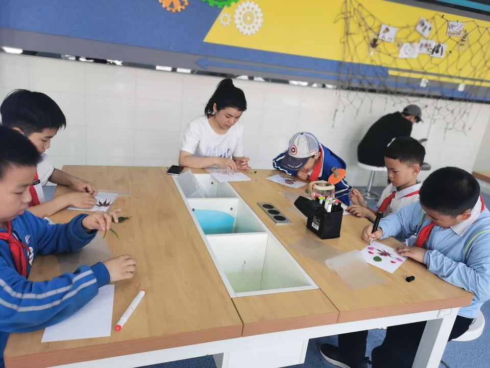 在标本制作处,学生们踊跃参与。将采集到的树叶、花瓣等精心筛选,摆出喜欢的图形,最后固定,一个个鲜活的自然标本制作而成。