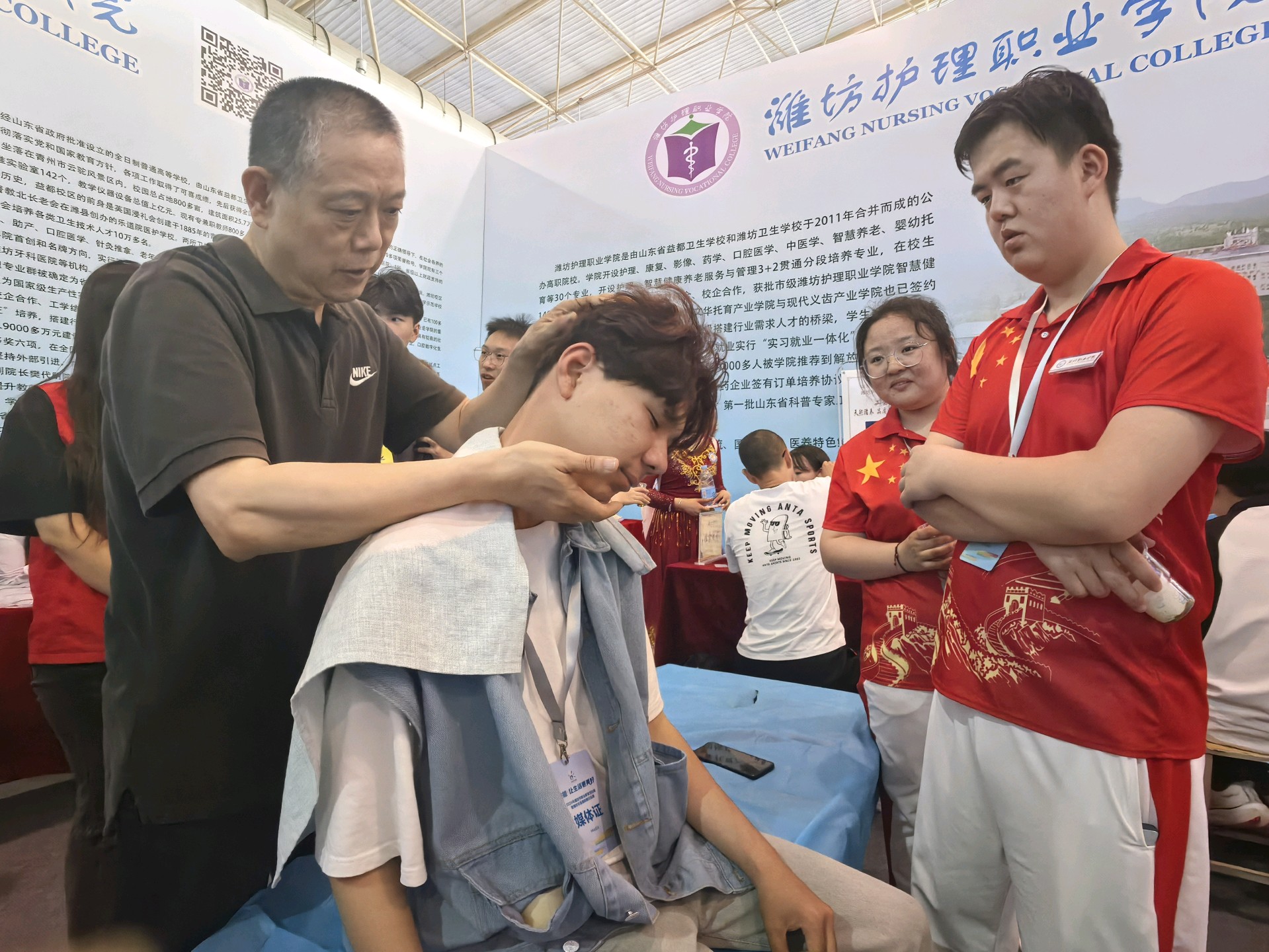 茶艺、古筝表演、面塑陶艺制作、心肺复苏体验、宠物美容……5月17日上午,以“一技在手,一生无忧”为主题的2024年潍坊市职业教育活动周在富华国际展览中心启动。现场还举办了“更好潍坊·职教力量”主题展暨首届潍坊职教好品展,职教师生纷纷在展位前秀技能,吸引了众多市民驻足,热闹非凡。一起来看一下职教的魅力!