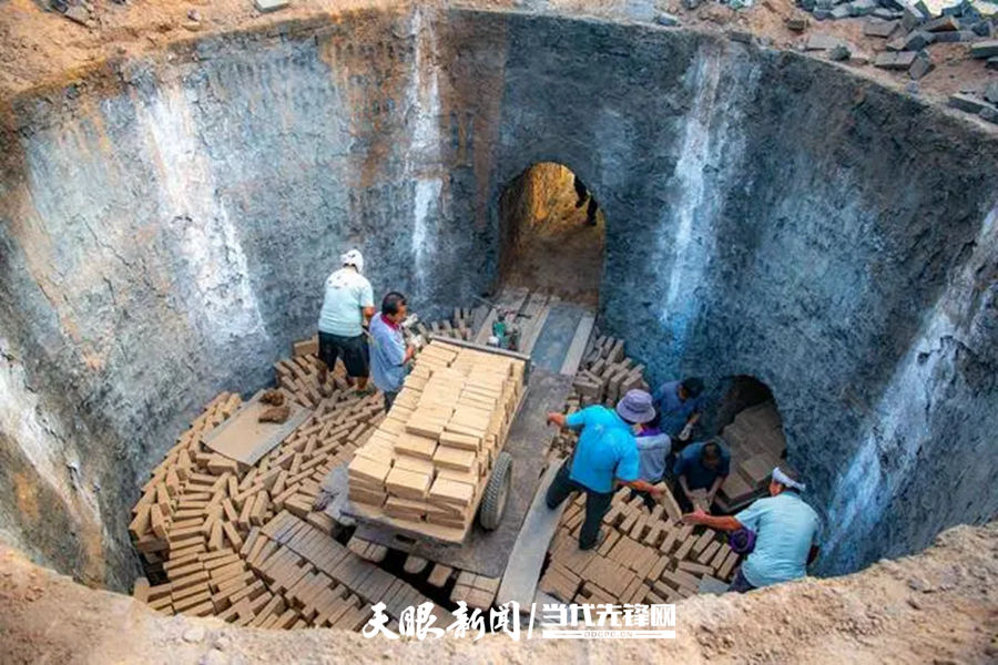 临清贡砖装窑。临清贡砖的烧制工艺十分复杂精细,要经选土、碎土、澄泥、熟土、制坯、晾坯、验坯、装窑、培烧、洇窑、出窑等近20道工序。