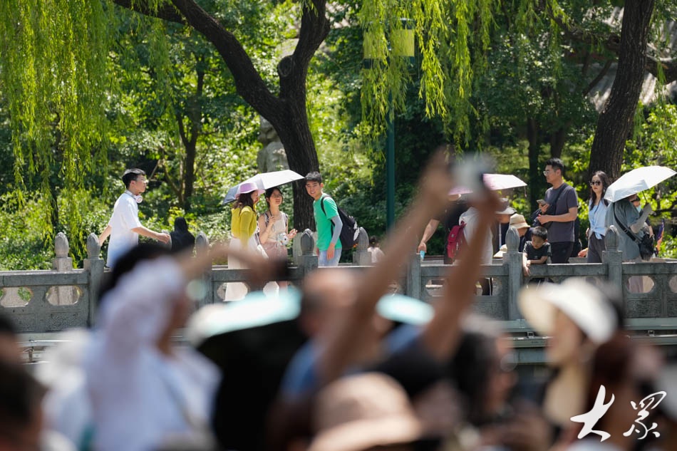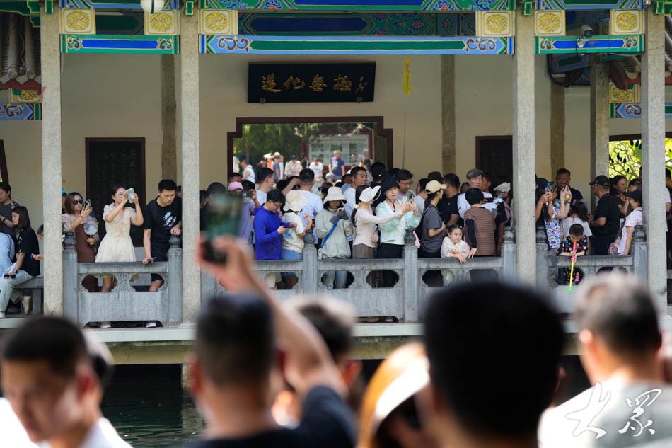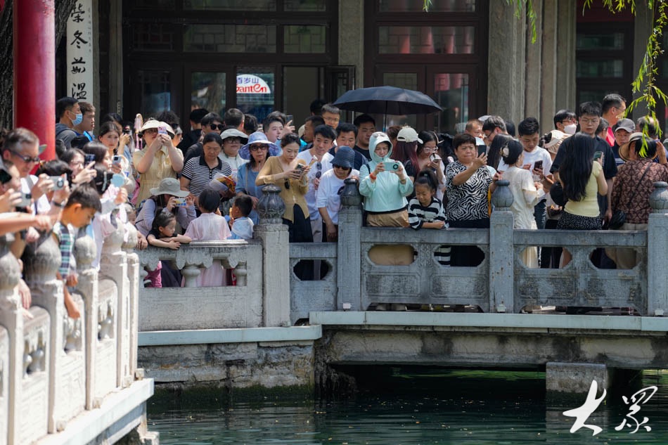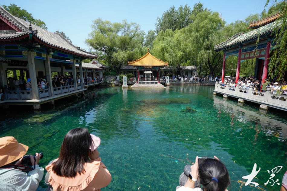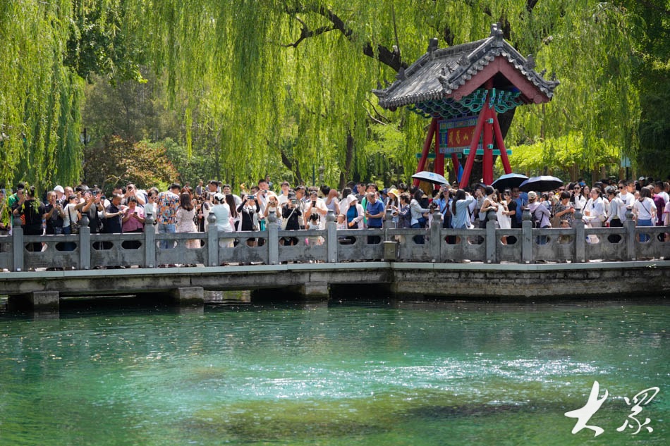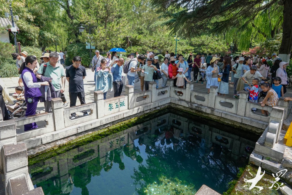 5月19日是中国旅游日,18日记者在天下第一泉景区济南趵突泉公园看到,许多游客和市民趁周末时光享受出游的快乐。