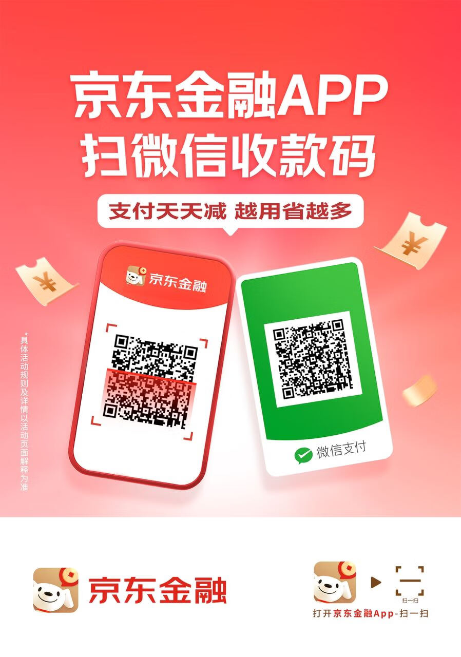 具体来说,用户可通过两种方式使用:一是打开京东金融App,点击右上侧+号「扫一扫」,扫微信收款码支付;二是进入京东金融App搜索“扫码支付优惠”进入活动页面后,即可直接扫微信收款码进行付款。两种方式均可天天减,最高立减30元。