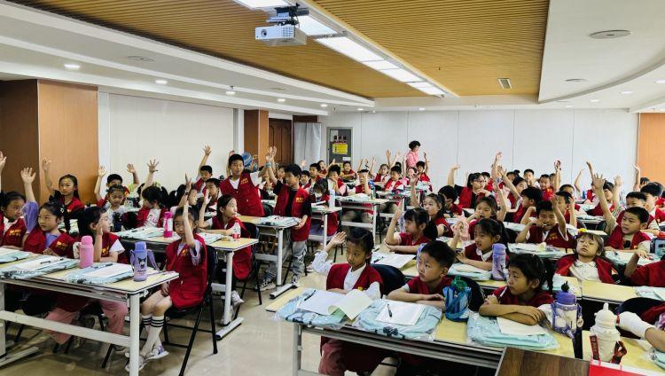 新闻课上小记者们抢答问题。