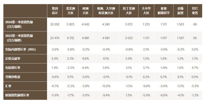 雀巢2024年第一季度最新财报。