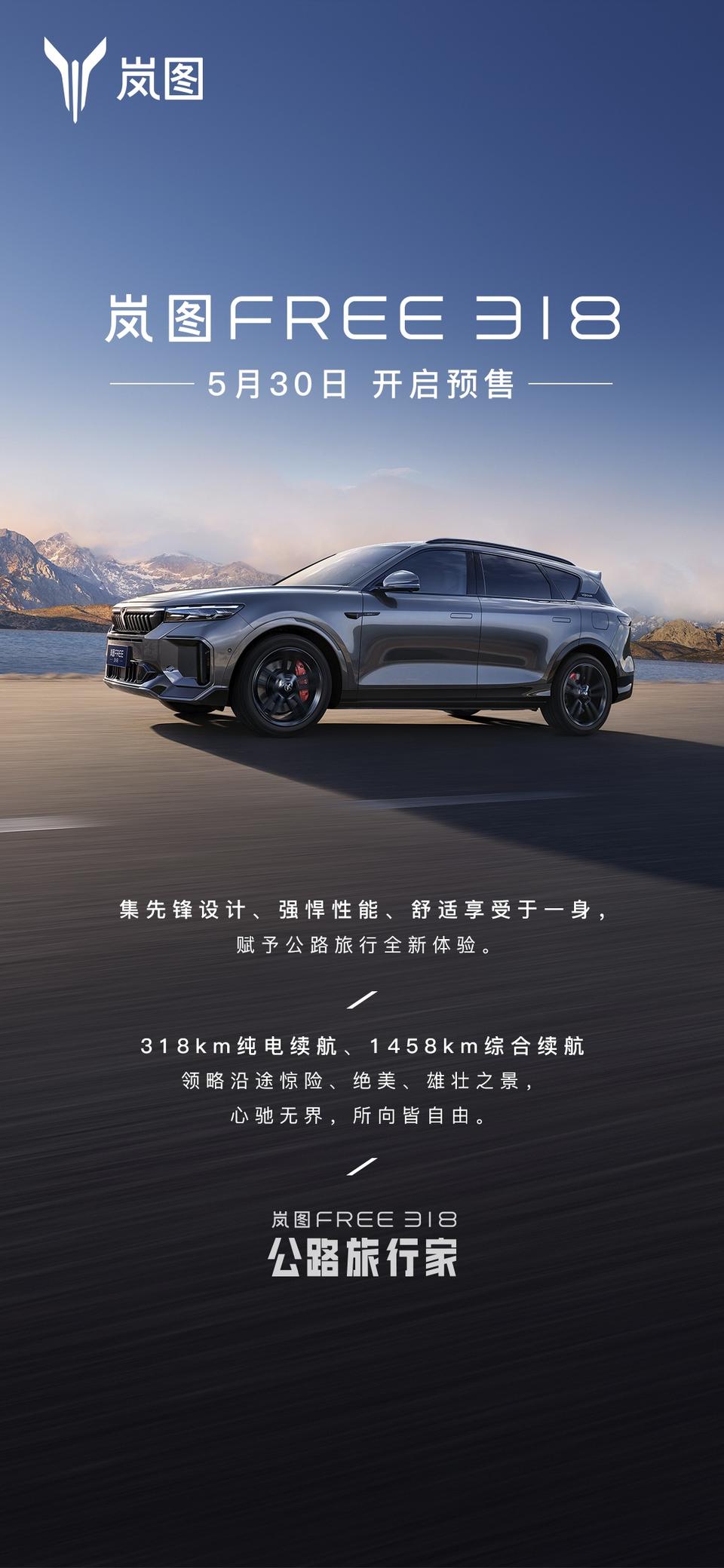 5月23日,东风公司旗下高端新能源品牌岚图官方宣布了今年第一款上新车型,岚图FREE 318,并预告将于5月30日启动该车型的预售。岚图FREE 318是在现款岚图FREE的基础上,围绕包括外观、续航、性能、智能、安全在内多维度焕新升级,是一款名副其实的“公路旅行家”。