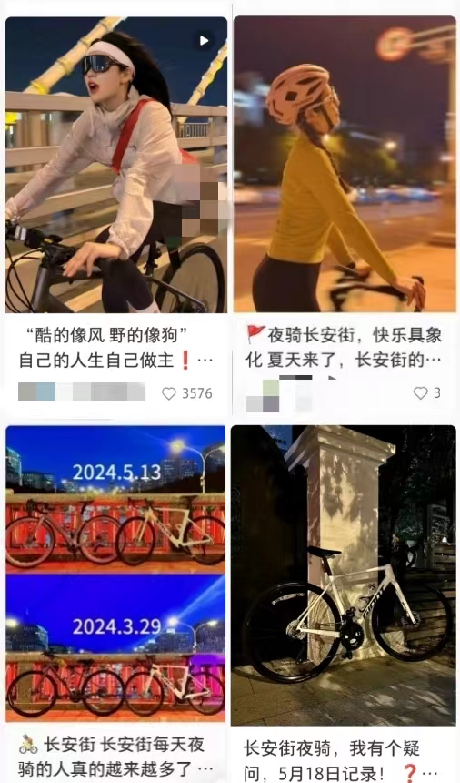 “夜骑长安街”成为骑行风尚。(图片截自小红书)