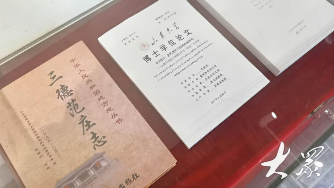在三德范村的村史馆内,摆放着一些与村史及民俗文化相关的书籍和论文。