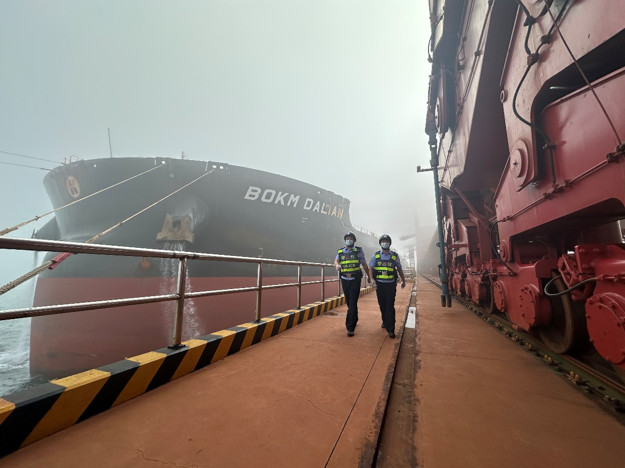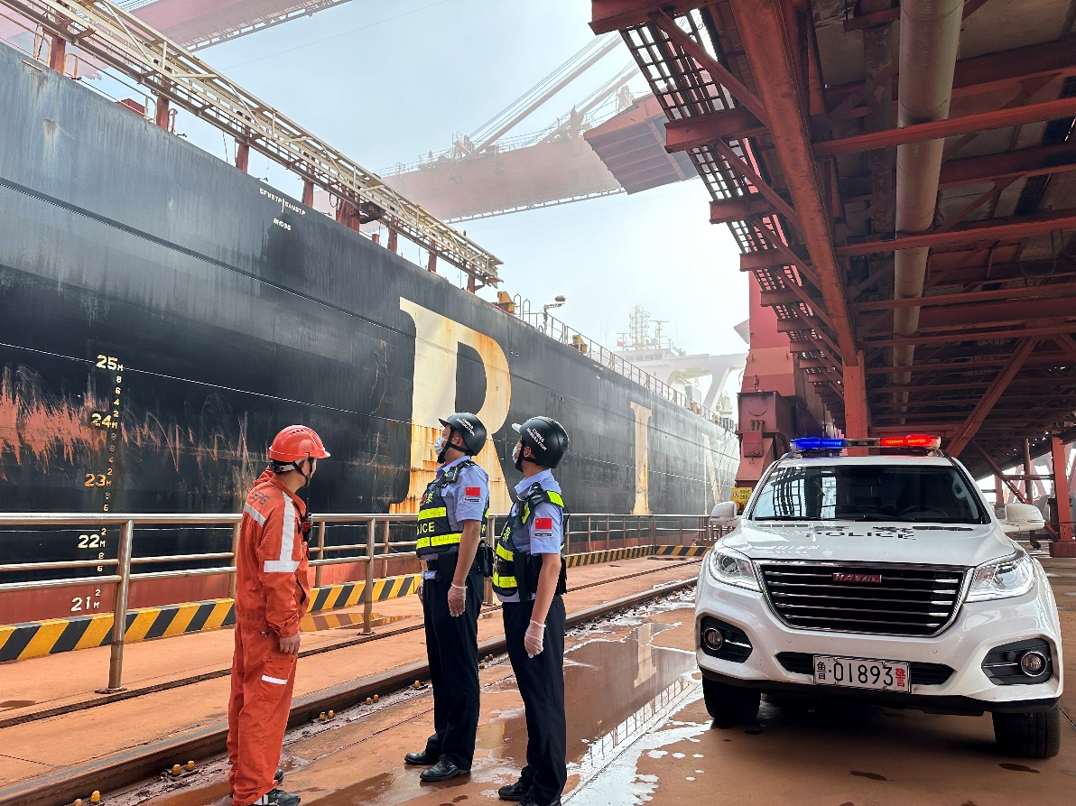 受冷空气影响,5月22日晚至5月23日,董家口港港区笼罩在大雾之中,港口最低能见度不足50米,董家口出入境边防检查站迅速启动恶劣天气应急预案,加大口岸警力巡查力度,强化在港船舶的管理,积极采取有效措施确保口岸安全,杜绝因大雾天气带来的口岸安全隐患。