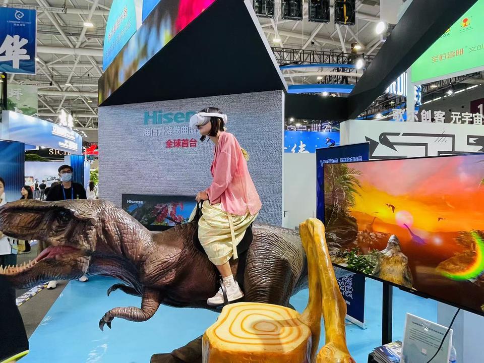 现场,记者感受了一把歌尔创客带来的数字技术创新应用产品。骑乘在仿真霸王龙上,通过虚拟现实技术,“穿越”到侏罗纪时代,耳边是恐龙捕杀猎食的嘶吼声,空中翼龙飞舞盘旋,一幅史前恐龙时代的原始画卷生动呈现在眼前。