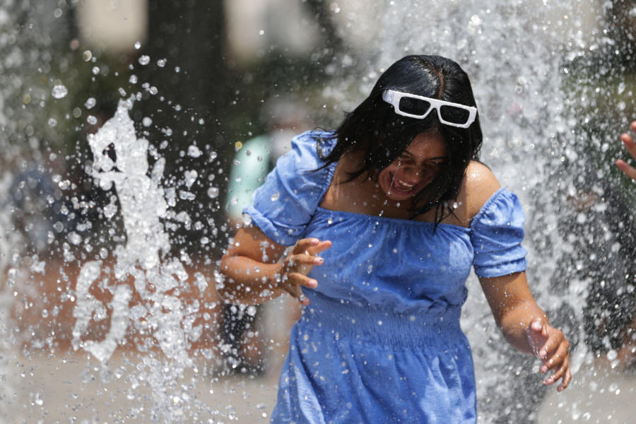 5月15日,在墨西哥首都墨西哥城,市民戏水消暑。新华社发