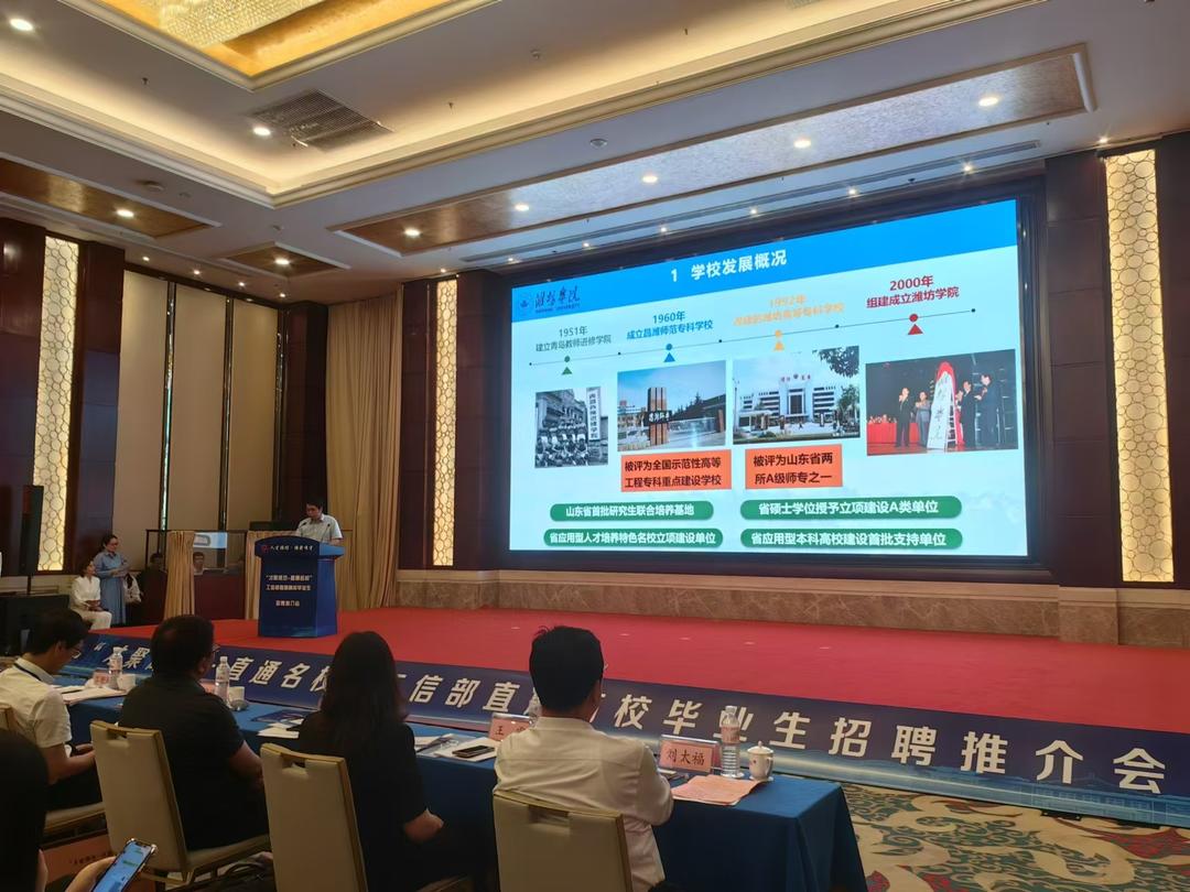 在推介会现场,来自工信部直属的7所高校分别就各自的学科优势、毕业生规模、毕业生就业特点以及校企合作等方面进行了宣传推介。同时,3家潍坊市的重点企事业单位也发布了各自的人才需求,为毕业生们提供了丰富的就业机会。
