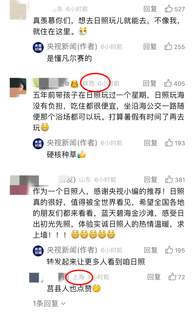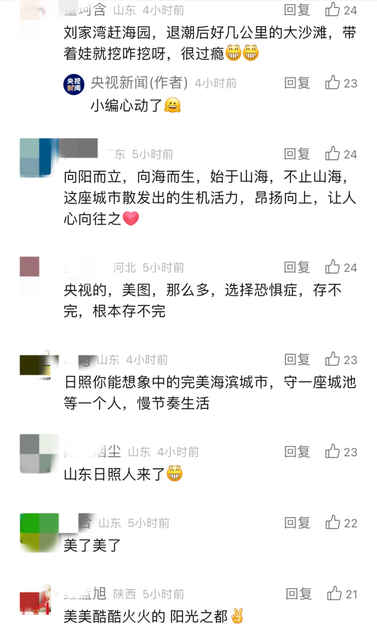 日照又被央视推荐啦!来自央视新闻发布文章《又 是 被 「 日 照 」 的 一 天》,被10万+网友阅读,央视新闻单条文章推送,受到全国广大网友的点赞评论。