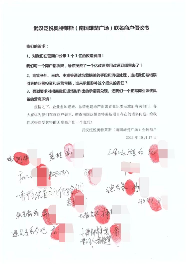 2023年2月,悦购馆十家商户联名向洪山区市场监督管理局举报,要求调查“泛悦·城市奥特莱斯”项目涉及的虚假宣传等不正当竞争行为。材料文书显示,该局当年5月对该举报予以正式立案。