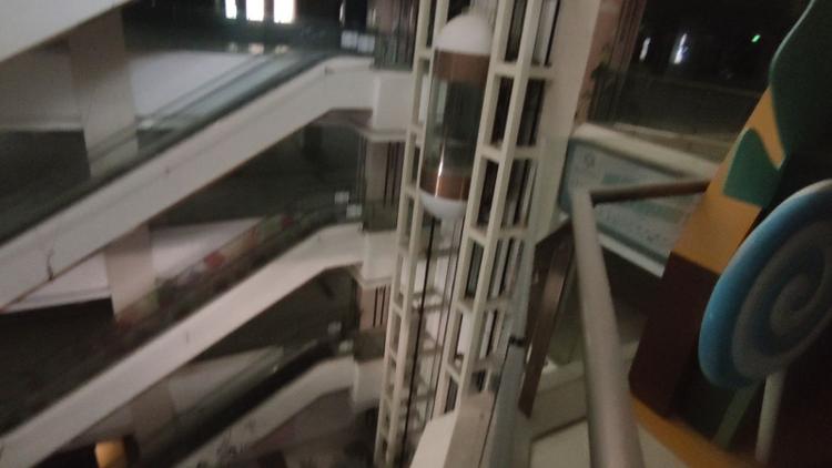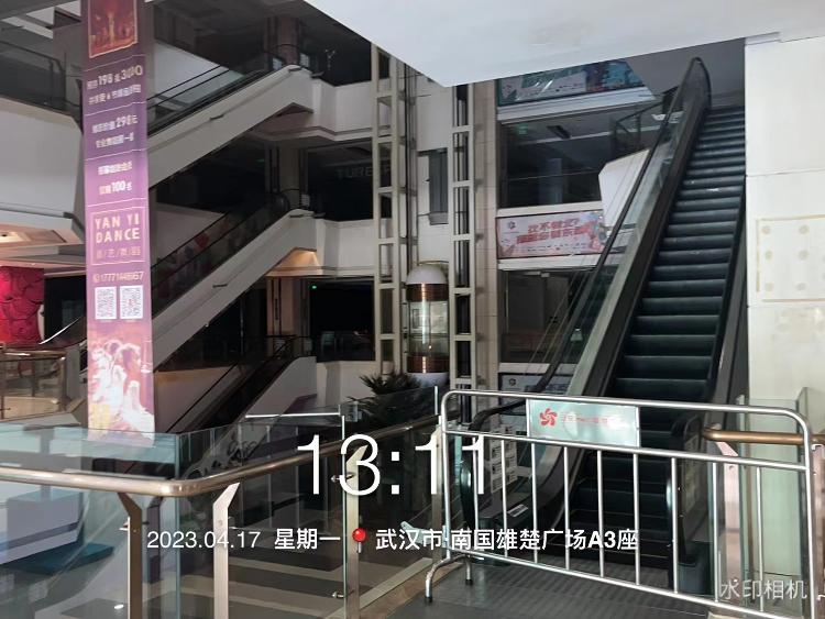 2023年4月17日,商场内公区电梯、大部分照明未开