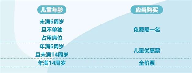 1. 每一名持票成年人旅客可免费携带一名未满6周岁且不单独占用席位的儿童乘车,超过一名时,超过人数应当购买儿童优惠票。儿童年龄按乘车日期计算。