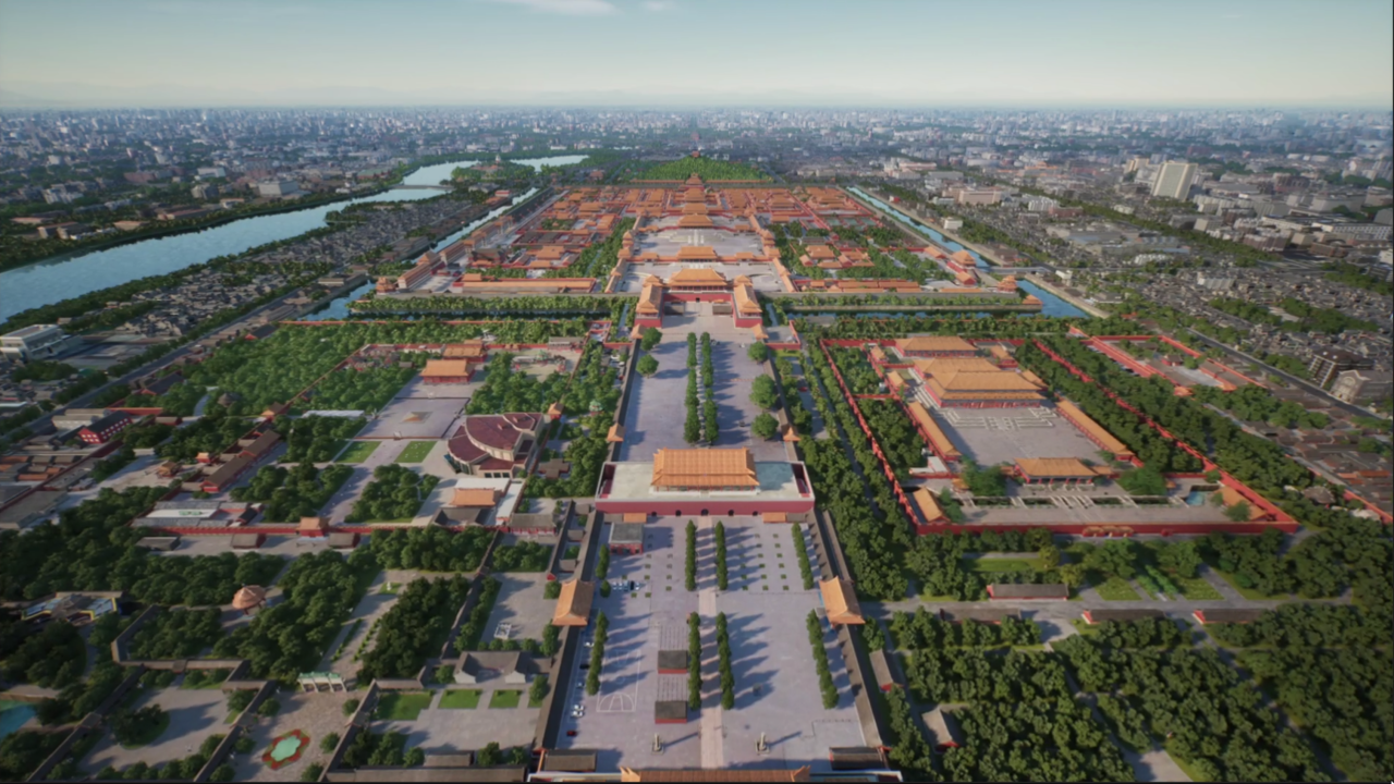为让用户见到日常所见不到的北京中轴线之景,“数字中轴·小宇宙”通过高清照扫、游戏引擎、云游戏、PCG程序化内容生成、SmartGI等游戏技术,采用4级地图模式,首次制作200km×200km超大地图,不仅对北京中轴线7.8公里核心遗产区进行了精细还原再现,同时还运用游戏互动设计思路以及解谜收集等交互玩法,对“三条中轴线”——即物理的中轴线、历史的中轴线和思想的中轴线——在数字化展陈维度实现了生动的表达,旨在探索用游戏科技助力文化遗产价值阐述、展陈、活化及传承的新模式。