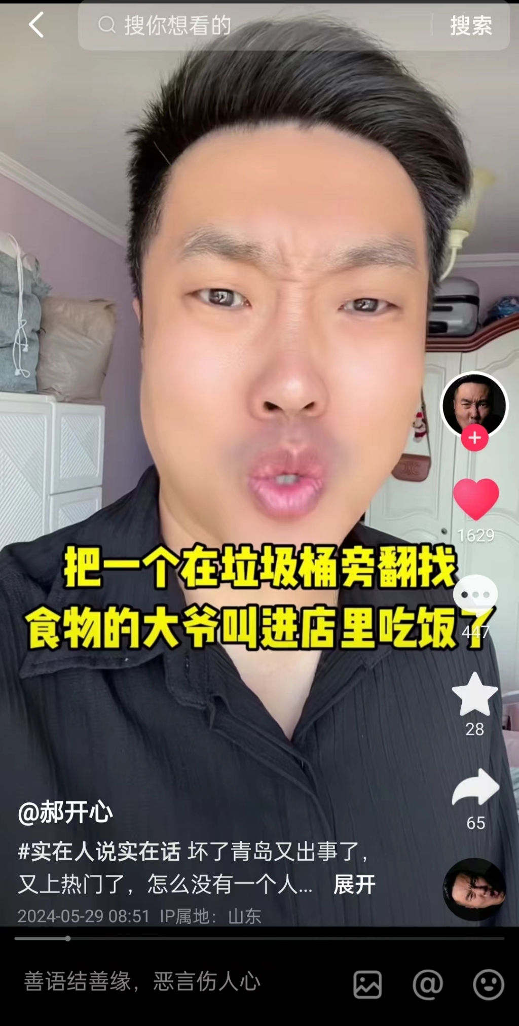 5月29日上午,青岛“网红天团”成员“@郝开心”发布视频,为陈相民和“麦穗大爷”的“双向奔赴”点赞。