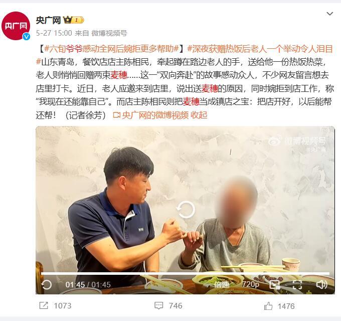此外,央广网的微博、抖音等账号,也发布相关视频采访。“社会最需要这些正能量!”“好人有好报,祝愿帅哥生意兴隆,财源滚滚。”“善良正义的人运气不会差,你的愿望一定能实现。”“我要到店吃几顿,以实际行动支持老板。”网友们纷纷留言。