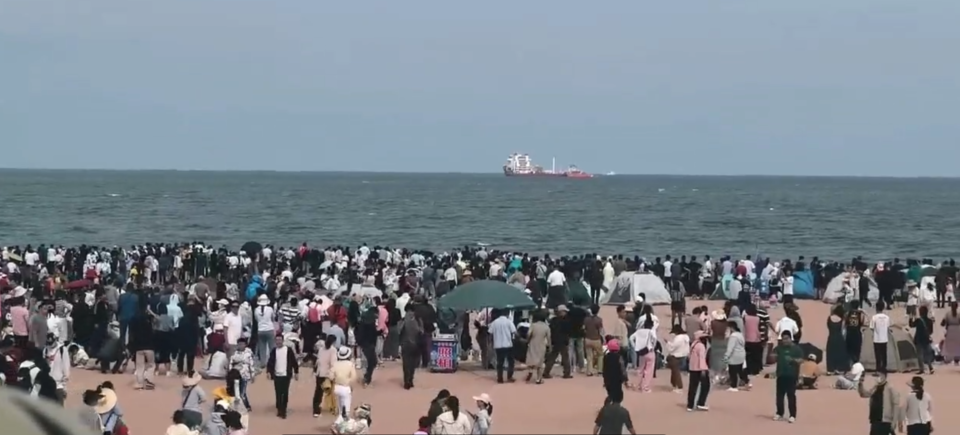 5月29日,日照近海将实施一次海上卫星发射任务。日照壹粉“邵大姐”向齐鲁晚报·齐鲁壹点情报站发来视频,下午3点20分,日照灯塔广场附近的沙滩上人山人海,不少游客、市民提前来到海边等候观看火箭升空。