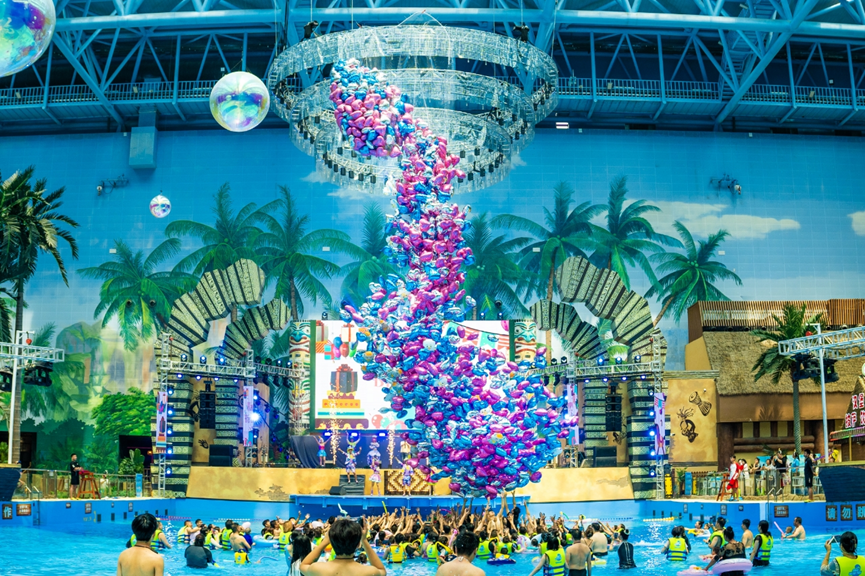 此次三周年庆典,济南融创文旅城以“万事OK”为主题开展了系列活动。在5月29日当天早上,济南融创文旅城的全体员工在融创乐园门口开展了“万事ok爱你you”的迎“ou”的迎宾活动,现场的游客们可以参与分享喜羊羊青草蛋糕,与文旅城共同庆生;下午水世界的水上气球雨、海世界水下生日祝福等也为游客们献上了精彩纷呈的庆典活动。