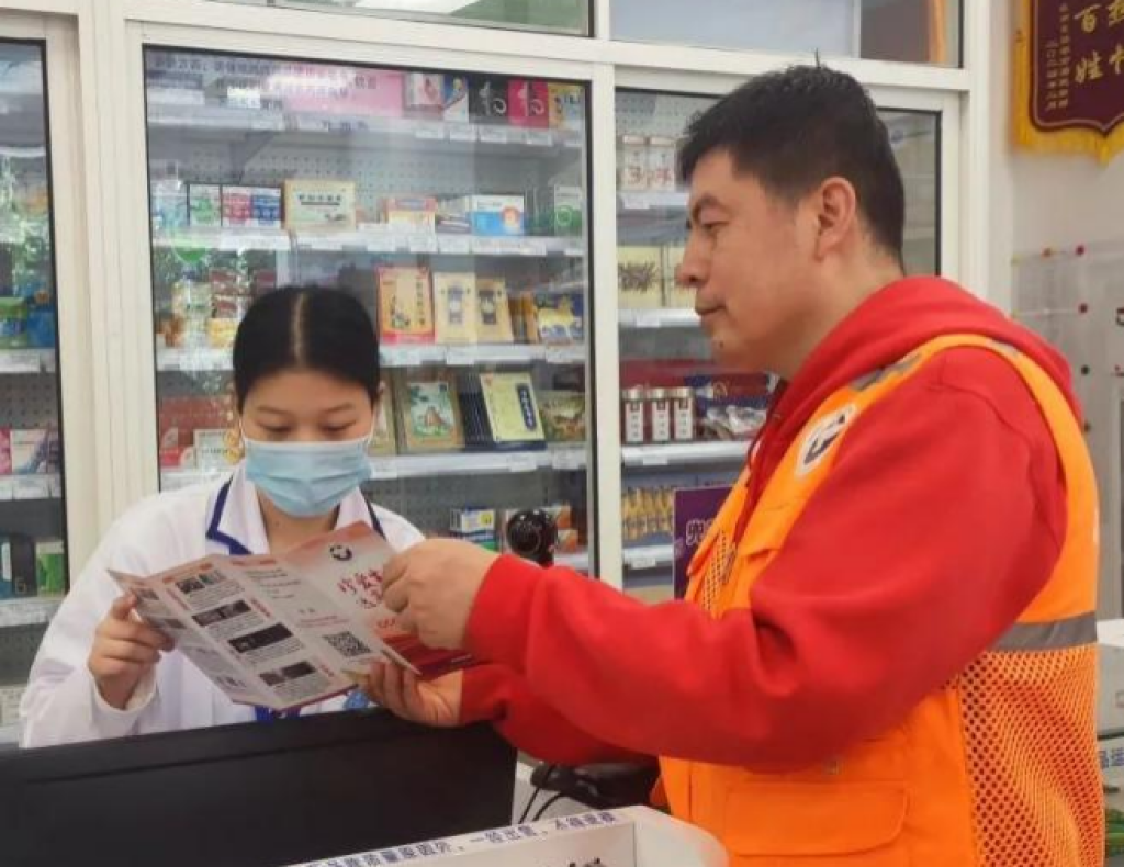5月21日,上海市虹口区嘉兴路街道联合辖区派出所、市场监管所开展麻精药品安全管理宣传搞活动。虹口区禁毒办 图