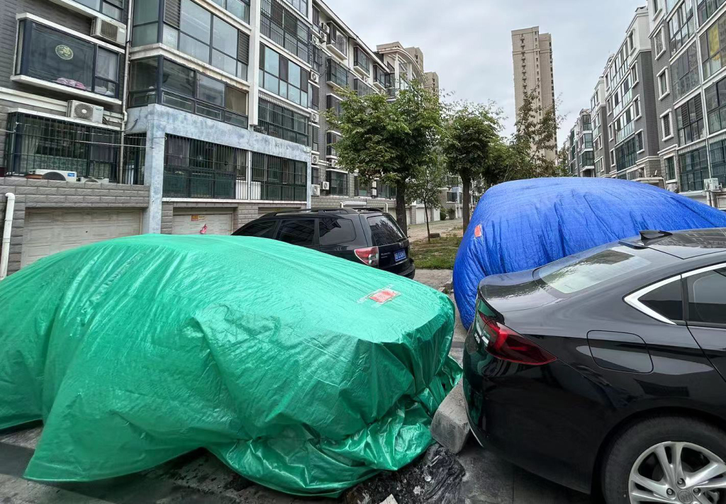 5月28日,在即墨某小区楼下,三辆盖着防雨篷布的轿车,格外显眼。