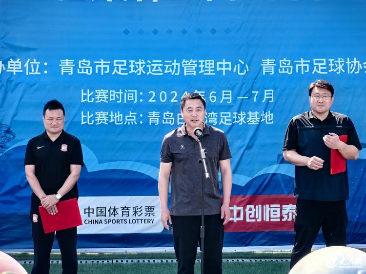孙震在开幕式上致辞,他对始终关心、支持青岛市足球事业的社会各界朋友和赞助商表示由衷的感谢,并对所有参加开幕式的人员表示热烈的欢迎。他表示,青岛足球历经沉淀与积累,近年来取得了令人瞩目的成就,不仅开创了“一城双超双甲”的崭新格局,更在青训工作上实现了国家级别的全面覆盖。作为青岛市足球的传统盛事,今年的足球协会杯赛迎来了空前盛况,参赛队伍数量达到了创纪录的48支,这不仅彰显了赛事的广泛参与性,更体现了城市足球竞技水平的高涨。在当前国家全面整顿足球事业的大背景下,青岛市足球协会更是肩负着重要的责任和使命,希望各参赛队珍惜宝贵的竞技机会,严格遵守比赛纪律,展现出各自的风采和高超技艺,共同打造一个公平、公正的竞赛环境。