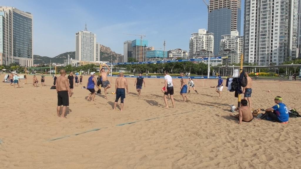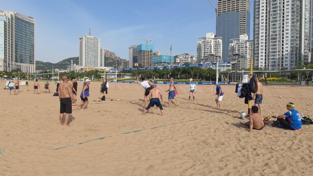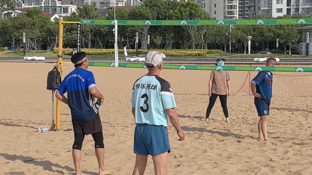 青岛“巧克力大爷”畅享沙滩排球,欢迎更多游客来石老人浴场运动打卡