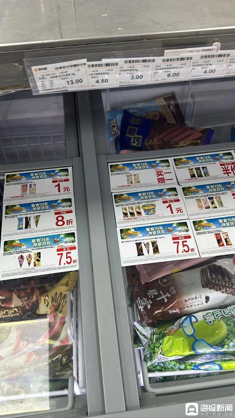 济南一家便利店内销售的雪糕以及推出的优惠活动