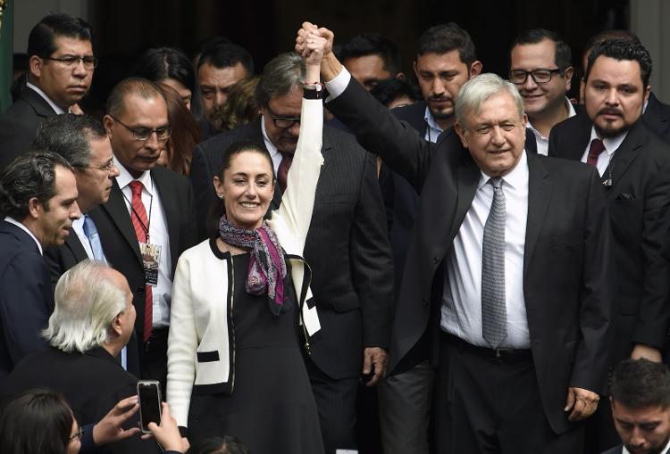 2018年12月5日,墨西哥总统洛佩斯出席墨西哥城市长辛鲍姆宣誓就职仪式。