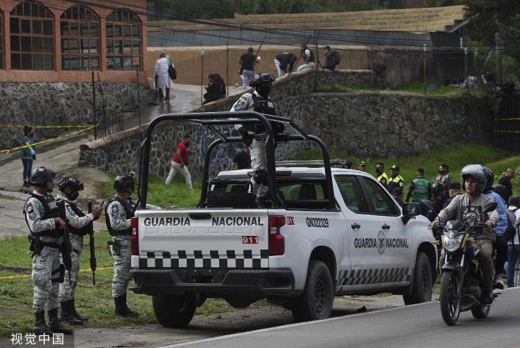 2022年7月12日,墨西哥城郊区图皮莱霍,国民警卫队与犯罪团伙发生交火。