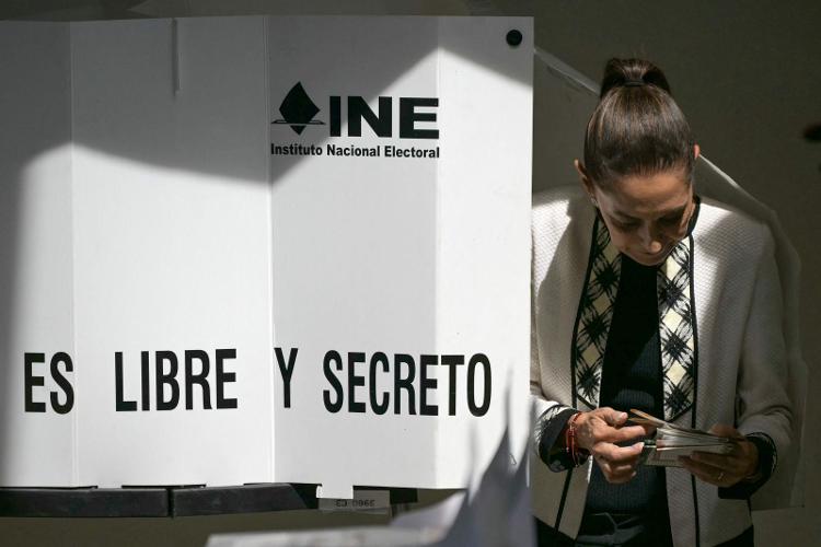 6月2日,墨西哥城,辛鲍姆在投票站投票。
