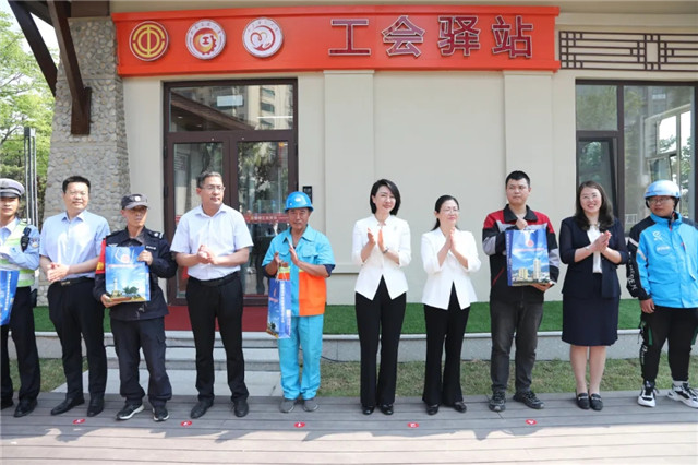 5月31日上午,威海市首家示范性工会驿站——九龙湾示范性工会驿站在威海经开区举行揭牌仪式。