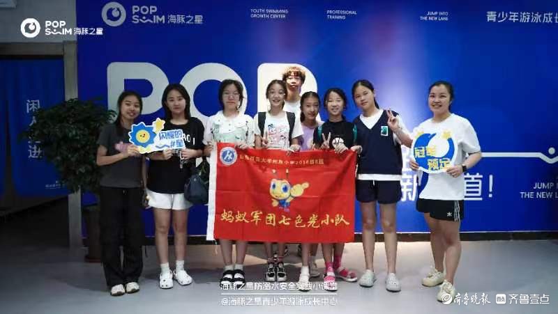 5月31日,山东师范大学附属小学六年级八班和四年级一班雏鹰小队的同学们共同参与了由海豚之星游泳成长中心举办的“沉浸式”防溺水教育。