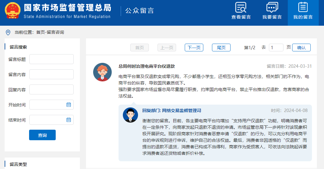 当前,网购平台的网购机制也已经引起市场监管部门的重视。今年3月底,国家市场监管总局在回复网友提出的关于网购平台“仅退款”机制时就表示,“下一步将针对该现象积极开展研究”。