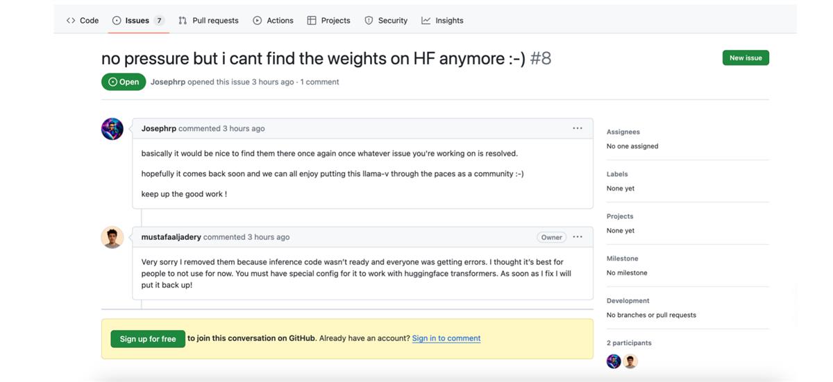 Aksh Garg在声明中表示:“首先,我们要向MiniCPM原作者道歉。我、Siddharth Sharma以及Mustafa(穆斯塔法)共同负责发布了Llama3-V。Mustafa负责编写了该项目的代码,但自昨日起,我们已无法与他取得联系。我与Siddharth主要负责协助Mustafa推广该模型。我们两人都曾查阅最新的研究论文,以核实该项目的新颖性,但我们并未被告知或意识到OpenBMB之前的任何相关工作。我们对此深感抱歉,并对自己未能充分验证项目的原创性表示失望。我们愿为所发生的一切承担全部责任,并已决定撤下Llama3-V模型。再次为我们的行为向所有人道歉。”