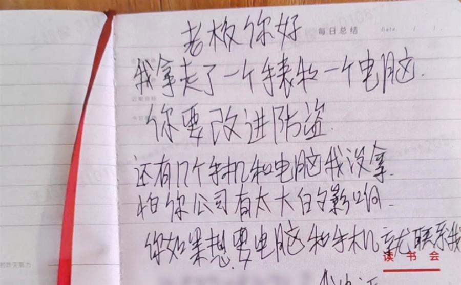 男子在上海一家公司盗窃得手后,竟留下字条,称不要东西只要钱,公司可以联系他赎回物品,并奚落失主“你要改进防盗”。上海浦东警方接到报警后,根据监控和对方留在字条上的电话,锁定犯罪嫌疑人桑某,最终,铁路警方在火车上将桑某抓获。6月4日,记者从上海市公安局浦东分局获悉,目前,桑某已被刑拘,案件正在进一步调查中。
