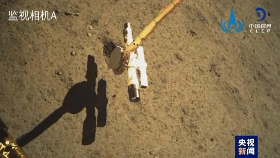 表取完成后,嫦娥六号着陆器携带的五星红旗在月球背面成功展开。这是中国首次在月球背面独立动态展示国旗。该国旗由新型复合材料和特殊工艺制作而成。由于落月位置不同,嫦娥六号国旗展示系统在嫦娥五号任务基础上进行了适应性改进。